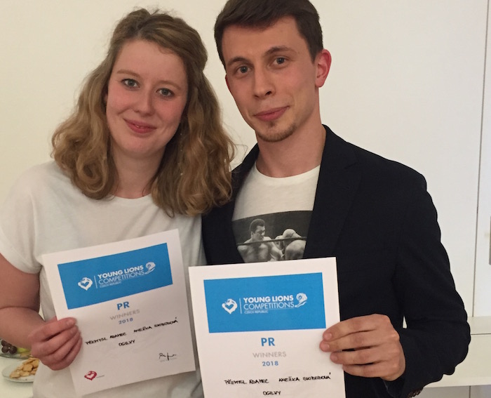 Anežka Svobodová a Přemysl Adamec z Ogilvy získali v kategorii PR na Young Lions první místo, foto: Lionhearted.