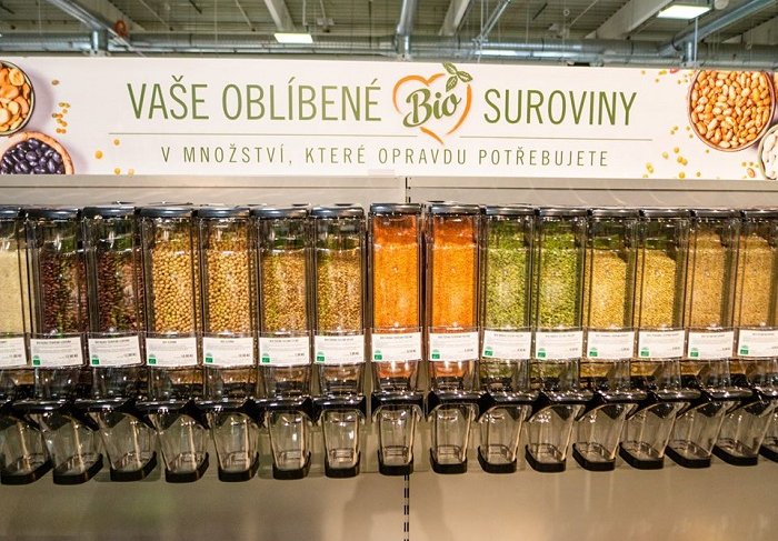 Obchodní řetězec Albert začal testovat bezobalový prodej. Od října nabízí možnost zakoupit bez obalu například vybrané luštěniny, oříšky, sušené ovoce, třtinový cukr, rýži, kuskus či bulgur ve svém hypermarketu v Galerii Butovice. „Zákazníci si mohou sami zvolit potřebné množství a odnést si ho v sáčku z recyklovaného papíru,“ popisuje na dotaz MediaGuru.cz ředitel komunikace řetězce Jiří Mareček.