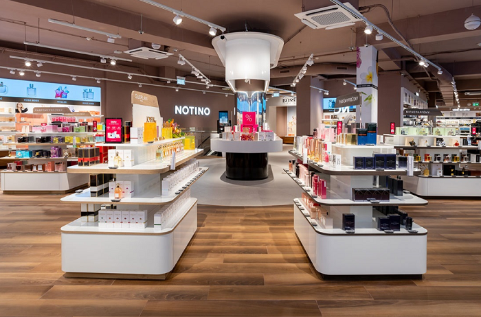 Prodejna nabídne zákazníkům širokou škálu produktů a značek jako Dior, Lancôme, MAC, Kérastase, Estée Lauder, Chloé, Burberry a stovek dalších. Na pobočce je možné mimo jiné vyzkoušet například virtuální zrcadlo, využít služeb make-up artistky či kadeřnice. Unikátem je patentovaný přístroj AirParfum, skrze který si zákazníci mohou vyzkoušet desítky vonných složek bez jakéhokoliv zatížení a vybrat si tak parfém přesně na míru.