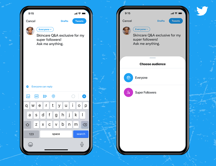 Výběr pro zobrazování obsahu na sociální síti twitter - širokému publiku, nebo tzv. super followerům, zdroj: Twitter