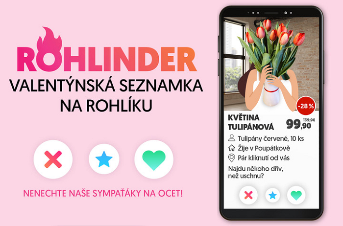 Online supermarket Rohlik.cz přichází na Valentýna se speciální kampaní inspirovanou moderní formou online seznamování. Kampaň Rohlinder se tak formou připomínající online seznamku Tinder snaží nalákat na snadné nakupování.