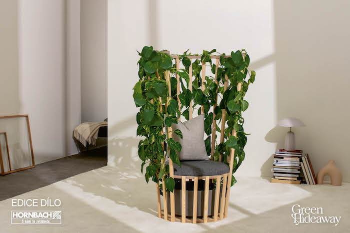 Křeslo Green Hideaway bylo navrženo jako zelené útočiště či úkryt, jež stírá hranice mezi interiérem a exteriérem. „V našem stále přetechnizovanějším světě se čas strávený v zeleni často krátí, proto Green Hideaway nabízí každému kousek přírody třeba v obývacím pokoji. Příroda má na lidi prokazatelně uklidňujícího účinek. Zapojení živého zeleného světa do našeho Díla bylo pro nás zvláště v této neklidné době přesně tím správným rozhodnutím,“ říká David Kolář, vedoucí marketingu společnosti Hornbach Česko a Slovensko.