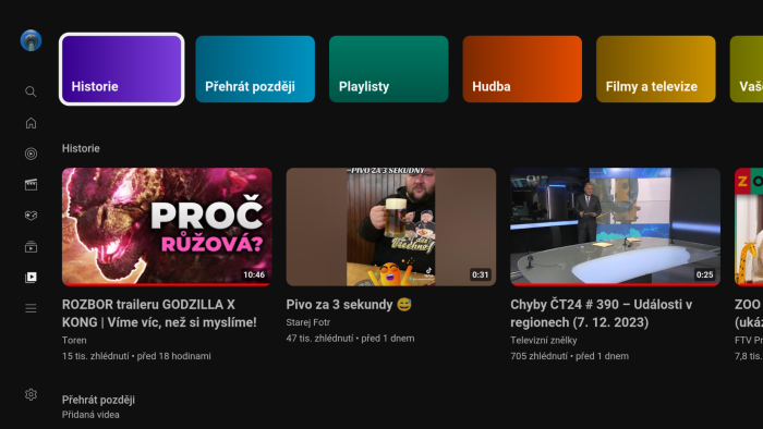 Uživatel má nicméně možnost pohybovat se v sekci Knihovna nadále i s vertikální orientací. Položky, které jsou uvedeny v horním, barevném horizontálním menu, kopírují svým obsahem řádky, které jsou k dispozici na hlavní stránce. Kromě náhledové fotky daného videa a jeho názvu jsou dále k dispozici informace o tom, z jakého kanálu daný příspěvek pochází, kolik má zhlédnutí a kdy byl do online služby nahrán. Možnost sledování TV archivů, jako má například Německu, v Česku není.
