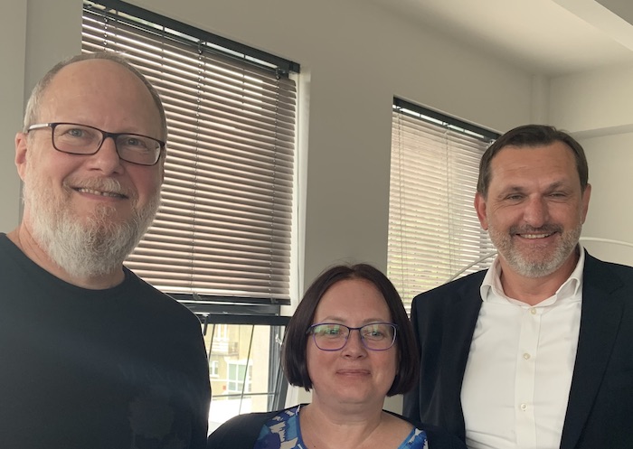 Ondřej Zahořík (vlevo), Hana Burečková ze Stavební spořitelny České spořitelny s předsedou představenstva společnosti Liborem Vošickým (vpravo), zdroj: SSČS