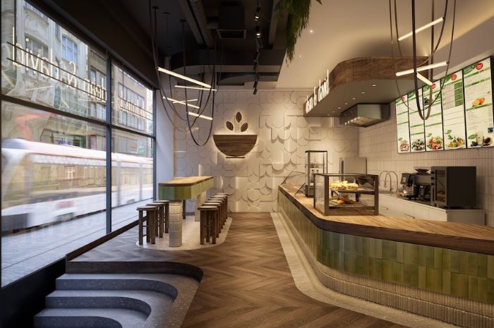 Na prostoru 115 m2 nabídne Dean&david v Máji například různé druhy wrapů, flatbreadů, sendvičů, bowls, kari pokrmů nebo sezónní polévky. Na výběr budou i smoothies, za studena lisované džusy či káva od lokální značky Nordbeans.