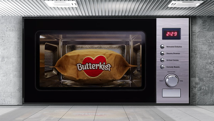 Věrná simulace mikrovlnné trouby včetně zvuků při ohřívání popcornu Butterkist se objevila na digitálním OOH. Stačí jen otevřít a nabídnout si....
